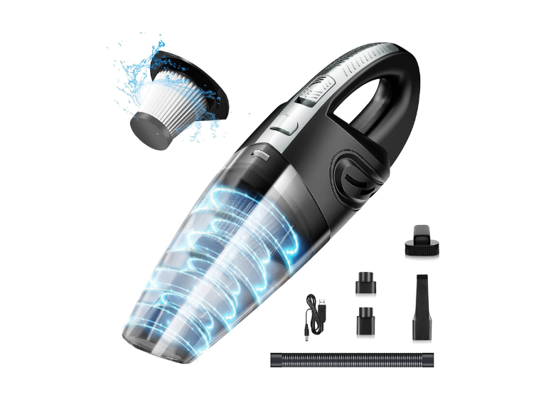 Esta aspiradora de mano inalámbrica 2 en 1 es ideal para limpiar el interior del automóvil y pequeños espacios en el hogar.